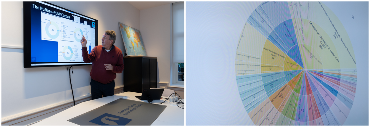 Nadat de hoofdvraag is neergelegd bij HCSS, gaat het kennisinstituut er in de afgelopen 6 maanden mee aan de slag. Daarvoor gebruiken de onderzoekers een subset uit een eigen opgezette database met daarin ruim 250.000 relevante documenten over de oorlog in Oekraïne. Dagelijks worden daar stukken geautomatiseerd aan toegevoegd. Allemaal afkomstig uit openbare, Russische bronnen. Denk daarbij aan officiële berichtgeving, academische literatuur, militaire publicaties, tijdschriften, denktanks, dagbladen, maar bijvoorbeeld ook berichten van militaire correspondenten. “Wij kennen dat veel minder dan de Russen”, vertelt HCSS-hoofdwetenschapper en Rusland-expert Stephan De Spiegeleire. “Militaire correspondenten zijn vaak gepensioneerde militairen of gepassioneerde mensen die het militaire wezen fantastisch vinden en daar continu over schrijven. Nu zit je in een situatie waarin een aantal van hen bijna realtime rapporteert.”