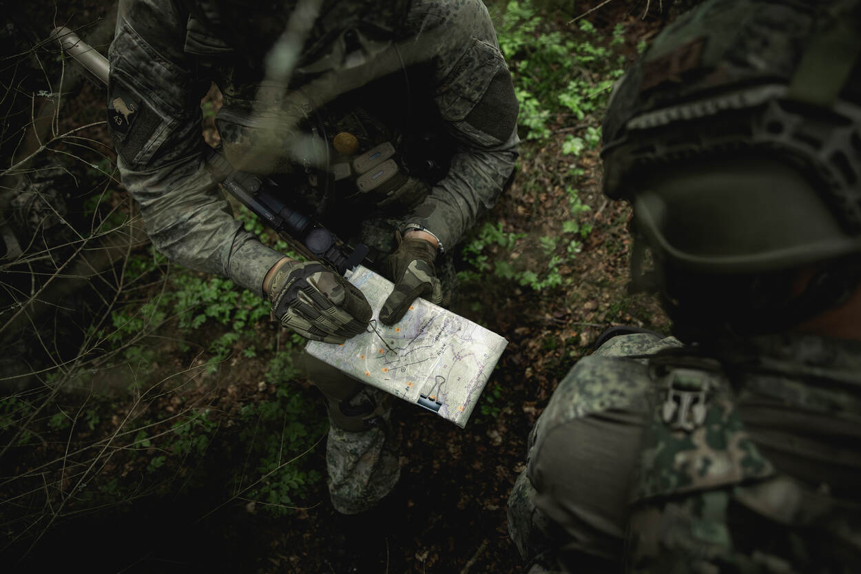 Dat houdt in dat we de rondombeveiliging doen, het gebied verkennen, patrouilles lopen en controleren wie er binnenkomt. We werken nauw samen met 10 Infbat, die de nabijbeveiliging van de CP op zich neemt. Dat deel kunnen wij dus loslaten zodat we een bredere gebiedsverkenning kunnen doen. In het scenario zijn bijvoorbeeld vijandelijke voertuigen gespot, die wij moeten opsporen. Best uitdagend, want we zitten ’s nachts in een schuilbivak, slapen weinig en lopen derdelijns.