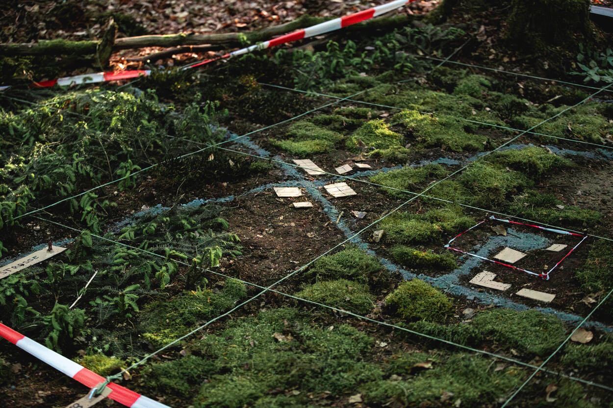 Militairen lopen door Duitsland. Een geïmproviseerde boskaart.