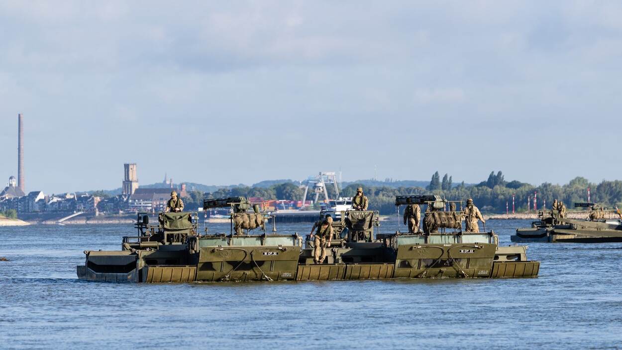 Ruim 1.000 militairen uit Duitsland, Groot-Brittannië, Italië en Nederland hebben afgelopen weekeinde een tijdelijke militaire veerdienst opgezet over de Rijn. Deze internationale River Crossing Operation was nabij het Duitse Emmerich, vlak over de grens bij Lobith.