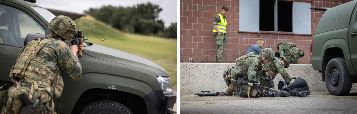 Ze kunnen tijdens de oefening dus meteen aan de slag bij het centraal station, waar op dat moment waarnemers van het Liaison and Observation (LOT) en de patrouille onder vuur liggen. Onder de acteurs van 2-Rescue vallen slachtoffers en de Rode Baretten vallen direct terug op hun instinct, training en ervaring. Eigen veiligheid eerst, de QRA inschakelen en zodra het dan kan de gewonden verzorgen. Bijkomend probleem: de actievoerders zien de Nederlanders als veroorzakers van alle ellende. “Ga naar huis, we gaan deze mensen meenemen”, roept een korporaal van de patrouille in het Engels. Hij krijgt meteen antwoord: “Blijf maar weg, jullie brengen alleen maar ellende.”
