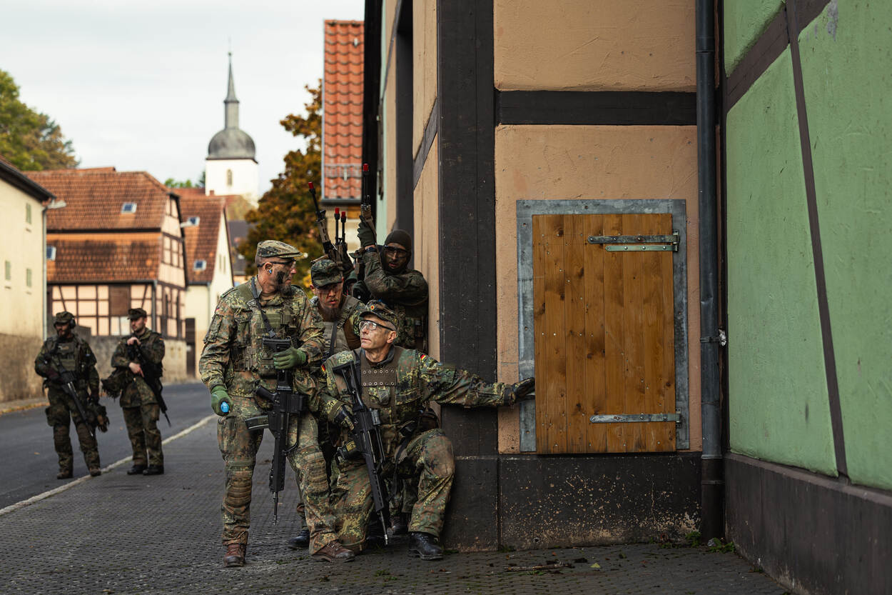 Duitse en Nederlandse reservisten trainden recent schouder aan schouder in Hammelburg; qua omvang niet te vergelijken met Nederlandse oefenterreinen. De Truppenübungsplatz in Beieren biedt uitgestrekte bossen, heuvelachtig terrein én het realistische Bonnland. In dat oefendorp, compleet met kerk en vakwerkhuizen, trainden de militairen het optreden in verstedelijkt gebied.