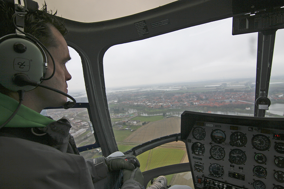 willekeurig. Maar Sebas van Leersum dirigeert zijn Enstrom 480 helikopter
