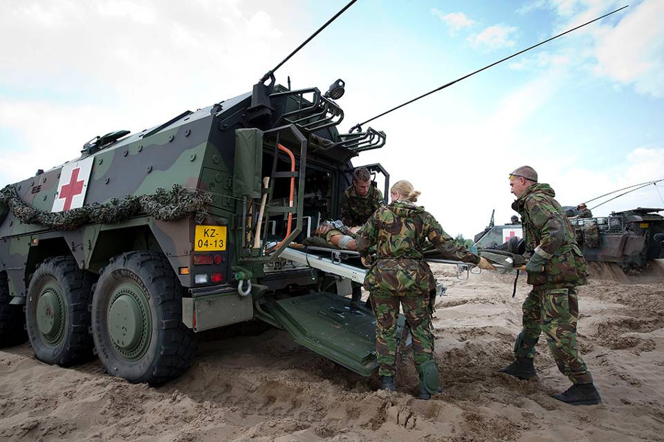 De nieuwste krachtpatser van de landmacht glijdt moeiteloos door de zandbak van het oefenterrein. Muurtjes van 80 cm of gaten van 2 meter: ook geen enkel probleem. De Boxer Ambulance rijdt in missies direct achter de gevechtstroepen, vandaar dat er hoge eisen zijn gesteld aan mobiliteit en ballistische bescherming. Het voertuig is door z’n vloerconstructie extra beschermd tegen inslagen van bermbommen. Vergeleken met de YPR is de Boxer Ambulance veel meer dan een gewondentransportvoertuig. Sergeant-majoor Ineke Willemse is dan ook in haar nopjes met het voertuig: “Als Algemeen Militair Verpleegkundige hebben we veel meer ruimte en middelen om de patiënt te behandelen. Ook de klimaatbeheersing is een vooruitgang.”