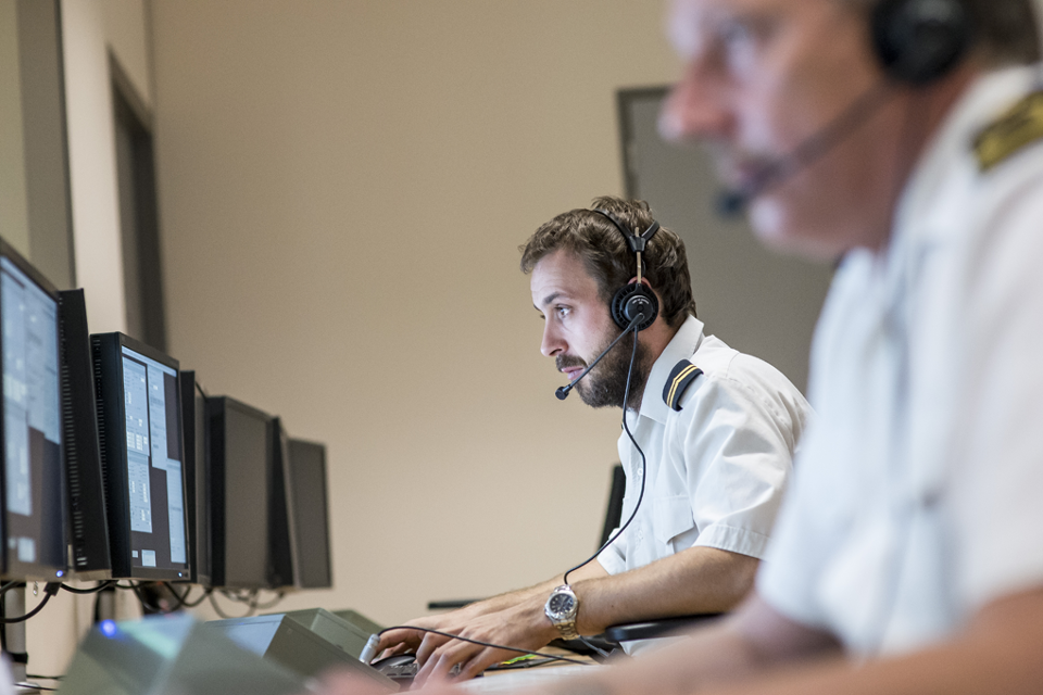 Vanuit Den Helder oefenen met een vlootverband op zee en omgekeerd. Het kan vanaf volgende week met de 9 simulatoren die staan opgesteld bij de Nederlands-Belgische Operationele School (NLBEOps). Ze bootsen commandocentrales van de Nederlandse en Belgische oppervlakteschepen en onderzeeboten na. Leren varen vanaf de wal dus. “En dat met 9 gesimuleerde schepen tegelijk. Het kan allemaal”, legt Martin van Egmond, projectmanager bij Joint IV Commando (DMO/JIVC), uit.