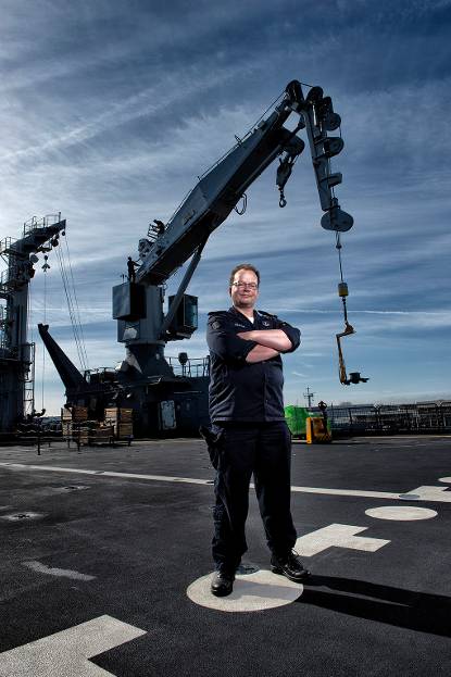 De laatste keer dat de krijgsmacht een schip nog voor de overdracht aan de marine inzette? Die kan de projectleider JSS, kapitein-ter-zee Paul de Leeuw, zich nog wel voor de geest halen. 1998, Kosovo. “Ik was eerste officier op de Rotterdam toen we op stel en sprong spullen voor de Gele Rijders naar Macedonië moesten brengen.” Dus toen midden september het telefoontje van het ministerie kwam, keek hij er niet van op. “Ik wist: dit kan ook een kans zijn.”