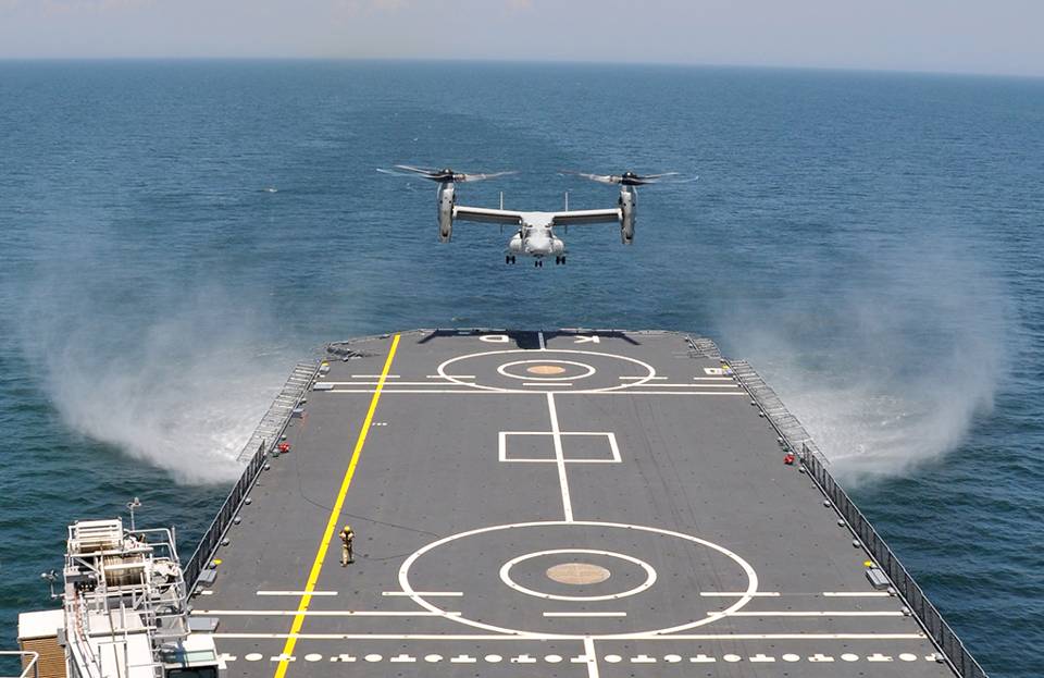 Tijdens het bezoek aan de Verenigde Staten landde een MV-22 Osprey op Zr.Ms.