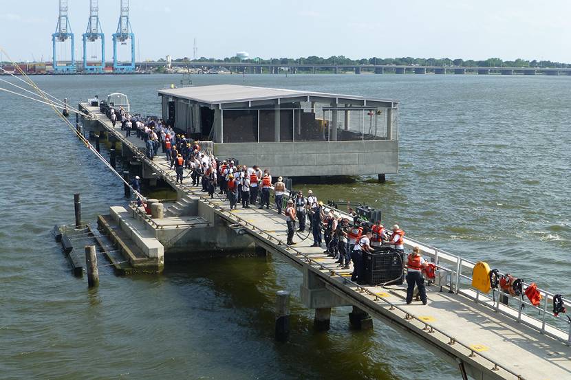 Voor een schip met de grootte van de Karel Doorman gebeurt dat demagnetiseren (specialisten spreken over ‘depermen’) op Lambert’s Point Deperming Station in Norfolk (VS), dat ook voor de vliegdekschepen van de US Navy wordt gebruikt. Dirk Rog begeleidde deze beproeving: “De magnetische signatuur van de Karel Doorman was tot dan toe globaal berekend. Je streeft ernaar om een schip naar een aanvaardbaar risiconiveau te brengen. Om de permanente magnetische lading te minimaliseren omwikkelen we het schip met stroomkabels, waar we vervolgens krachtige stroom doorheen laten vloeien. Dit noemen we ‘depermen’. Dat omwikkelen met die zware kabels is overigens een behoorlijke klus voor de bemanning.”
