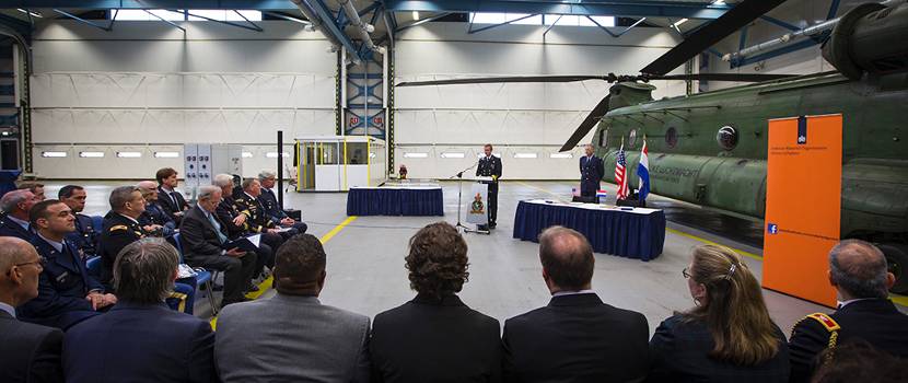 Projectofficieren van DMO kolonel Koen van Gogh en luitenant-kolonel Wil van Rijn kregen bij de presentatie alle lof toegeworpen voor het werk dat is verricht om de ondertekening nog voor het nieuwe jaar voor elkaar te krijgen. Het duurt nog tot de zomer van 2019 voordat de nieuwe Chinooks worden afgeleverd, zo zei de Amerikaanse generaal-majoor James McDonald (US Army Security Assistance Command)