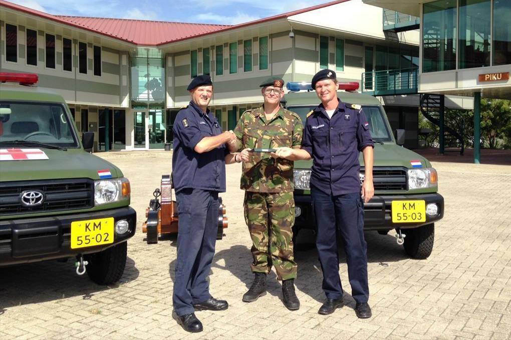 ziekenauto’s overgedragen aan de Commandant der Zeemacht in het Caribische