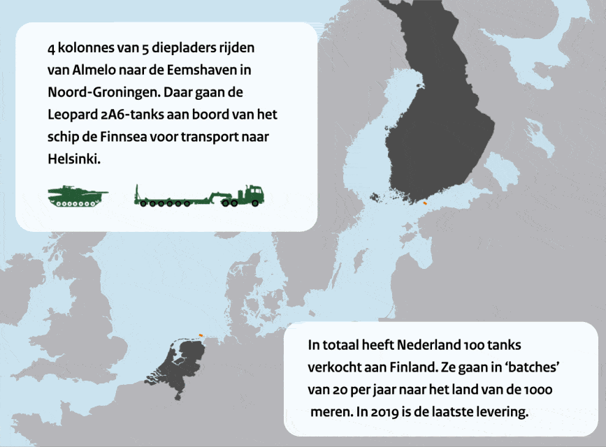 Van het Complex Vriezenveen in Almelo via de Eemshaven naar de Finse hoofdstad Helsinki. Voor een mens al een hele reis, maar helemaal voor een tank van het type Leopard 2A6, een gevaarte van bijna 68 ton.