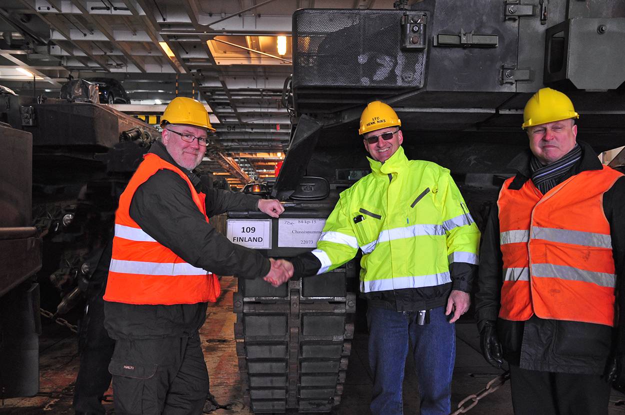 Geen tank echter die ons land verlaat voordat een grondige inspectie plaats heeft gehad. Daarvoor kwamen in februari 7 specialisten van de Finse krijgsmacht naar ons land voor de controle van de pantsers en de bijbehorende uitrustingspakketten en boordwapens. “Alles was piekfijn in orde”, weet luitenant-kolonel Henk Niks (DMO). “De verhoudingen onderling zijn supergoed. De aanwezigheid van hun Inspecteur der Infanterie, kolonel Jukka Valkeajärvi, geeft al aan dat Finland er groot belang aan gehecht.”