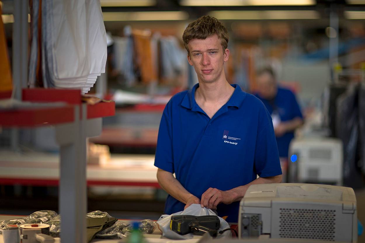 Raymond zelf heeft het prima naar zijn zin bij het KPU-bedrijf. “De sorteerband vind ik het leukst. Soms moet je flink heen en weer rennen om alles bij te houden, daar hou ik wel van. Achter de inpaktafel is het wat statischer, dat vind ik minder prettig. Maar het leukst is het contact met de collega’s. We zijn nooit te beroerd om elkaar te helpen als het moet. Daarnaast is de begeleiding ook fijn. Ik weet dat ik meer structuur en duidelijkheid nodig heb. Ik kan bij de managers altijd terecht.”
