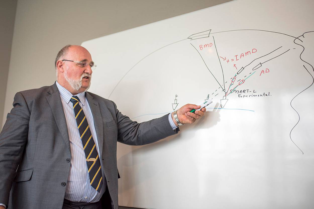 Laat kapitein-luitenant ter-zee ing. Fred Douglas over rakettechnologie uitweiden en je bent uren onder de pannen. Als hij nog in leven was geweest, had Werner von Braun wat kunnen leren van deze bevlogen ‘raketoverste’, die hoofd is van het Bureau Maritime Integrated Air and Missile Defense van DMO. De gezaghebbende Amerikaanse Missile Defense Advocacy Alliance kroonde Douglas eind april tot Missile Defender of the Year.