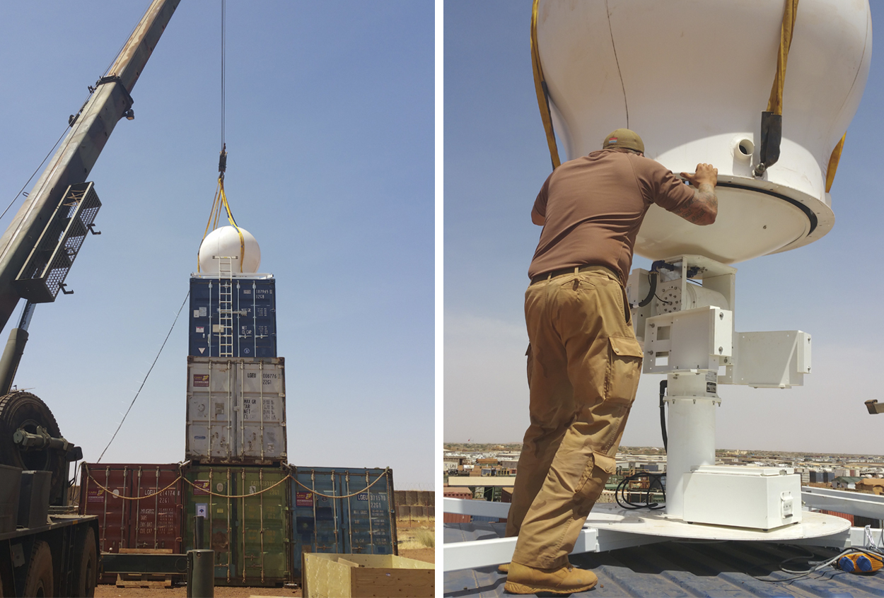 De gewenste mobiele radar moest binnen een straal van 100 kilometer (plotselinge) weersveranderingen zien opkomen. Stof, hitte en sterke wind mochten de apparatuur daarbij niet belemmeren. Een radarkoepel, airconditioningsysteem en nog een aantal kleine aanpassingen op een bestaand type (zee-)radar bieden uitkomst. Op zich geen heel bijzonder product voor Defensie, weet technisch radarbeheerder sergeant-majoor Rob van Heteren van de Joint Meteorologische Groep (JMG). “Dergelijke systemen staan ook op onze schepen en luchtverkeerstorens. Die apparatuur kun je alleen niet zomaar oppakken en meenemen. Een mobiele variant hadden we nog niet in ons assortiment. Vandaar dat die speciaal besteld moest worden.” Je zou denken dat zo’n apparaat tijdens de missie in Afghanistan ook erg welkom was geweest. “Dat zou heel goed kunnen, wellicht heeft men er toen één gebruikt van een partnerland.”