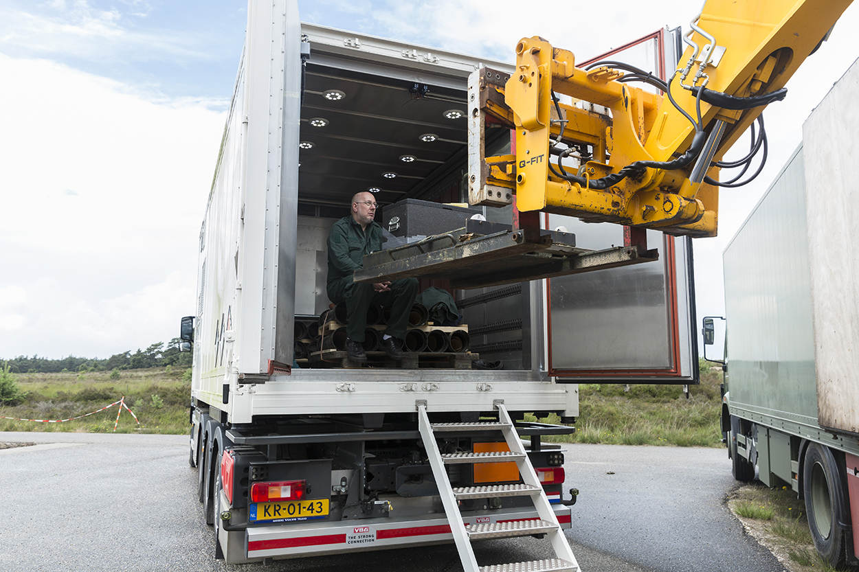 Hiervoor staan 2 zogenoemde Weibel meetsensoren garant, die op de bovenkant van de schietbuis zijn gemonteerd. Na ieder van de in totaal 70 testschoten krijgt Cees Nikkels op zijn computer direct de bijbehorende waarden gepresenteerd. De werking van de Weibel is volgens de technicus gebaseerd op het doppler-principe. Een uitgezonden signaaltje reflecteert op de verschoten granaat, dat wordt opgevangen door de antennes op de loop. “Om de Vo zo goed mogelijk te meten, gebruiken we er 2”, vertelt Nikkels. “Doordat de ene wat verder van de monding is verwijderd dan de andere, ontstaat een klein, verklaarbaar verschil in meters per seconde.”