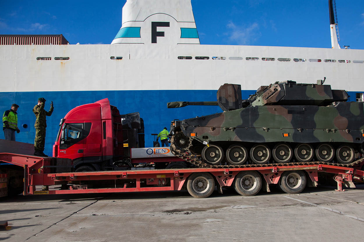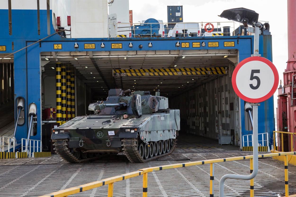 Het Projectteam Afstoting Grondgebonden Materieel heeft de eerste van 44 CV-90 pantservoertuigen geleverd aan Estland. Samen met een 1 Leopard bergingstank en 5 containers met reservedelen en uitrustingspakketten gingen de 14 infanteriegevechtsvoertuigen over zee naar Paldinski, de haven van Tallin.