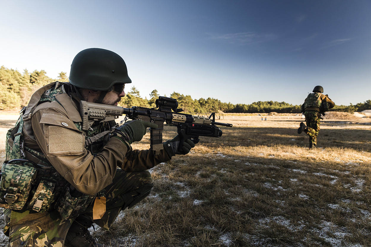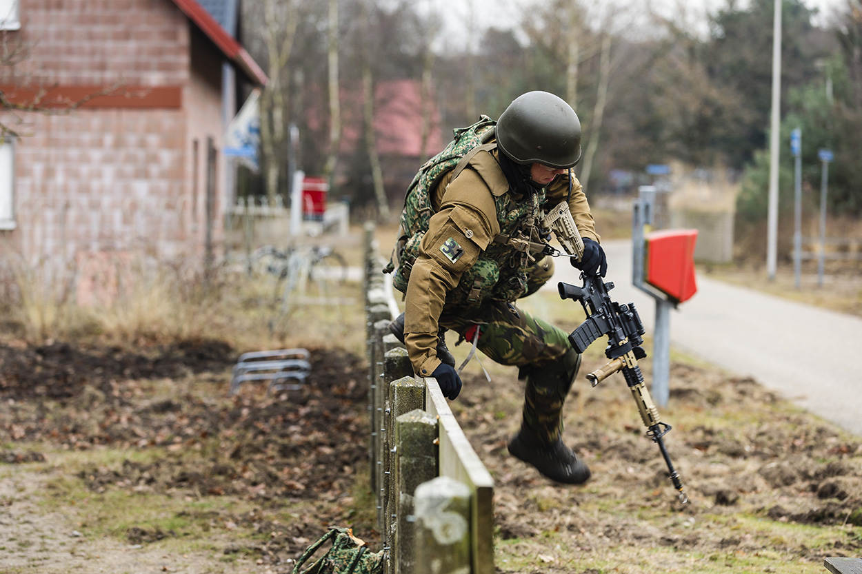 De laatste restjes wintermist kleven aan de vlekkenpakken. Militairen van 42 Bataljon Limburgse Jagers uit Oirschot tijgeren over de bevroren grond van oefenterrein De Vlasakkers. De kleinkaliberwapens verscheuren de stilte en het lijkt niet meer dan een gewone oefening.