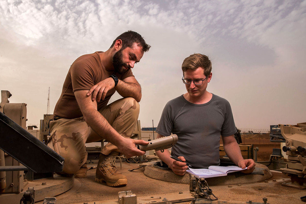 “Dit is de eerste keer dat een 3D-printer in een inzetgebied wordt gebruikt”, zegt de voor de missie gemilitariseerd Metz. “Nu maken we enkel randapparatuur. We wagen ons niet aan materiaal zoals een ophanging of remmen. Er mogen absoluut geen gevaarlijke situaties ontstaan.”