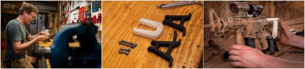 Kapitein Remco Hereijgers, commandant van het Hersteldetachement op Castor, deelt het enthousiasme van DMO-mannen Metz en Zwiep. “We kunnen met deze apparatuur meteen inspringen op de behoefte van de klant. Spullen worden in iedere missie net weer op een andere manier gebruikt. Zo zat de infraroodverlichting op de quad op de verkeerde plek voor het gebruik in Mali.” Met behulp van de 3D-printer was het mogelijk snel een nieuwe beugel te maken, zodat een monteur de verlichting op de juiste plek kon plaatsen.