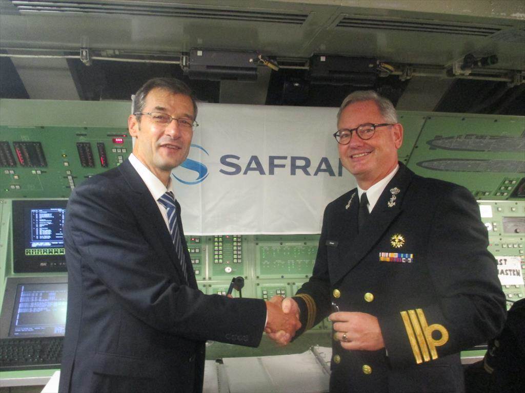 De onderzeeboten van de Walrusklasse krijgen een nieuw plaatsbepalingssysteem. Het Franse SAFRAN SA levert de apparatuur die het verouderde Ships Inertial Navigation System (SINS) vervangt. Kapitein-luitenant ter zee Jan Willem Scheuer, inkoopmanager DMO en Jean Christophe Mugler, commercieel directeur SAFRAN zetten hun handtekening onder het contract.