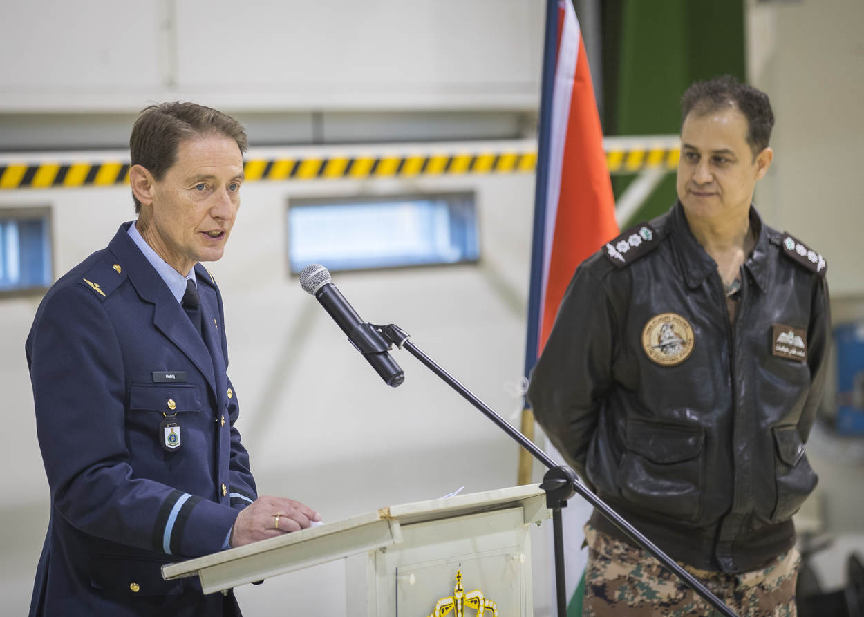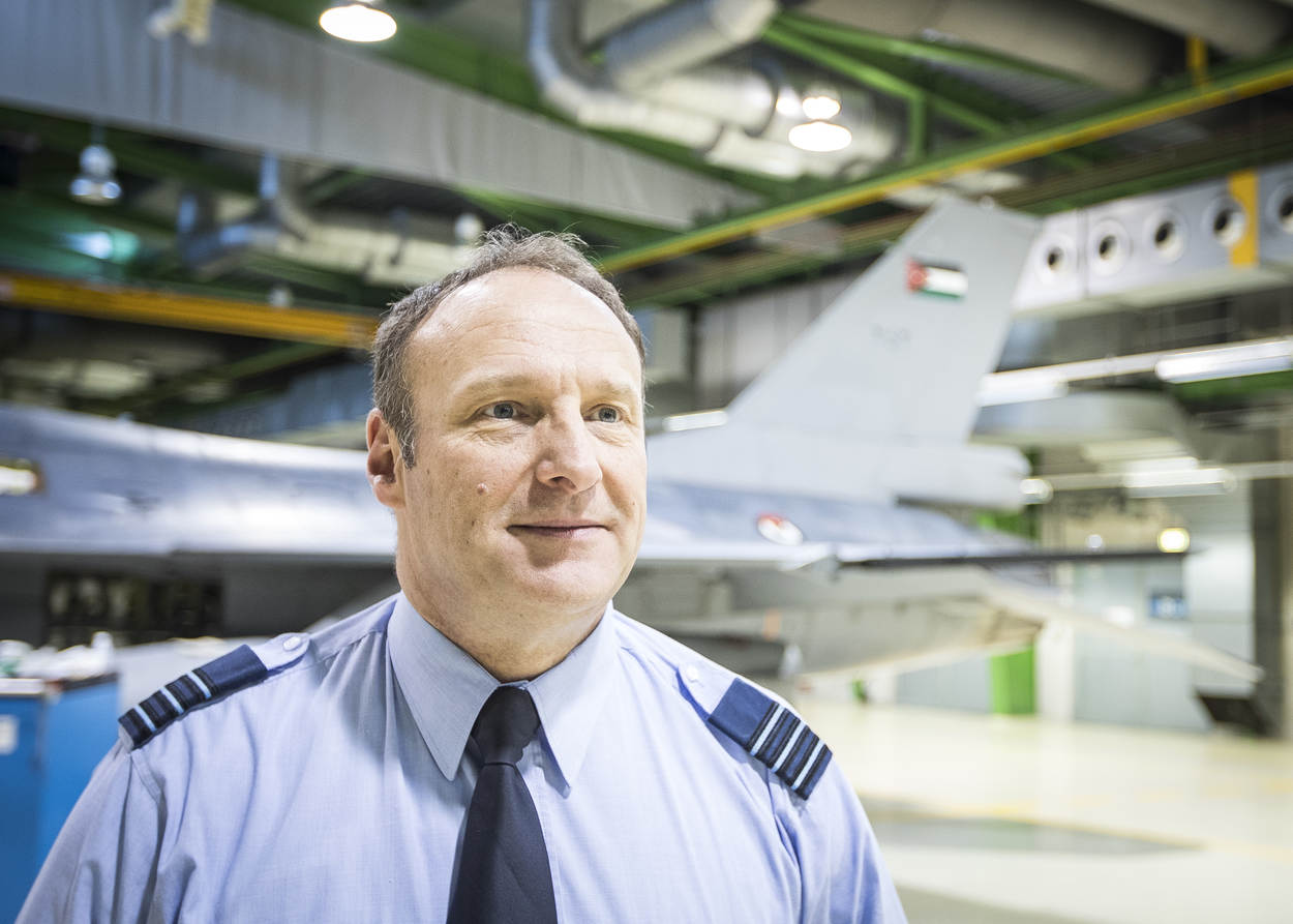 “Het is een goed voorbeeld van samenwerking geweest tussen het Commando Luchtstrijdkrachten en de Defensie Materieel Organisatie dat we vandaag 15 F-16’s officieel aan de luchtmacht van Jordanië kunnen overdragen.” Die woorden van commodore Peter Heblij, hoofd Afdeling Algemene Inkoop en Verkoop (AAIV) bij DMO, echoën nog na in Hangaar 6 op vliegbasis Volkel, als de monteurs de voormalige J-879 nog eens aan een inspectie onderwerpen.
