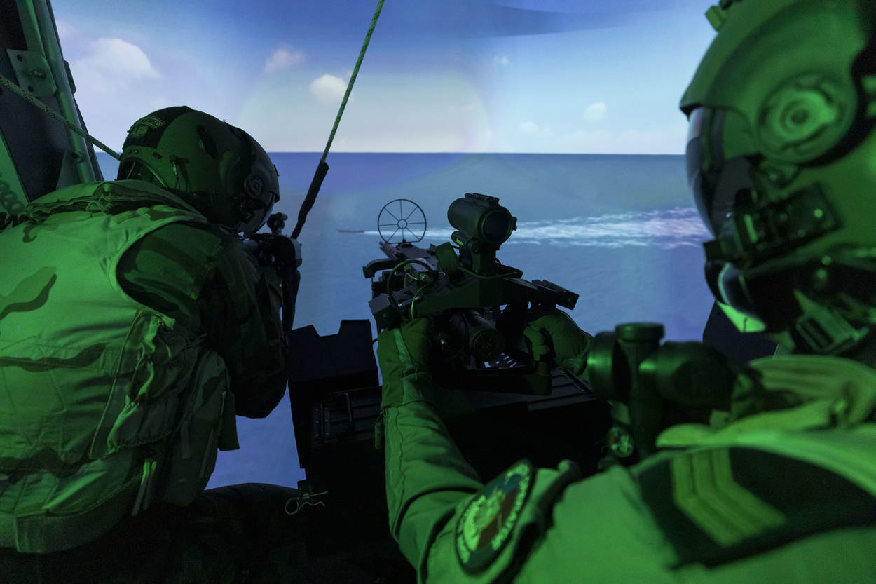 Het gaat dan niet alleen om schiethandelingen, maar ook hoe je vliegprocedures volgt. Vroeger kregen schutters ze van te voren in een stilstaand toestel op de grond aangeleerd. Maar om nou te zeggen dat de handelingen daarna een tweede natuur werden: nee. “In deze sim kunnen we ze wél tot in den treure oefenen”, vertelt Fritsema opgetogen. Dat dit vruchten afwerpt, is bewezen. M3M.50- en MAG-schutters trainen al 3,5 jaar hun vaardigheden in de simulator. De reguliere bemanningsleden merken groot verschil, weet de luitenant. “De voorbereiding voor het live trainen is stukken beter. De schutters hoeven in de heli niet meer te zoeken waardoor ze zich écht op het schieten kunnen concentreren.”