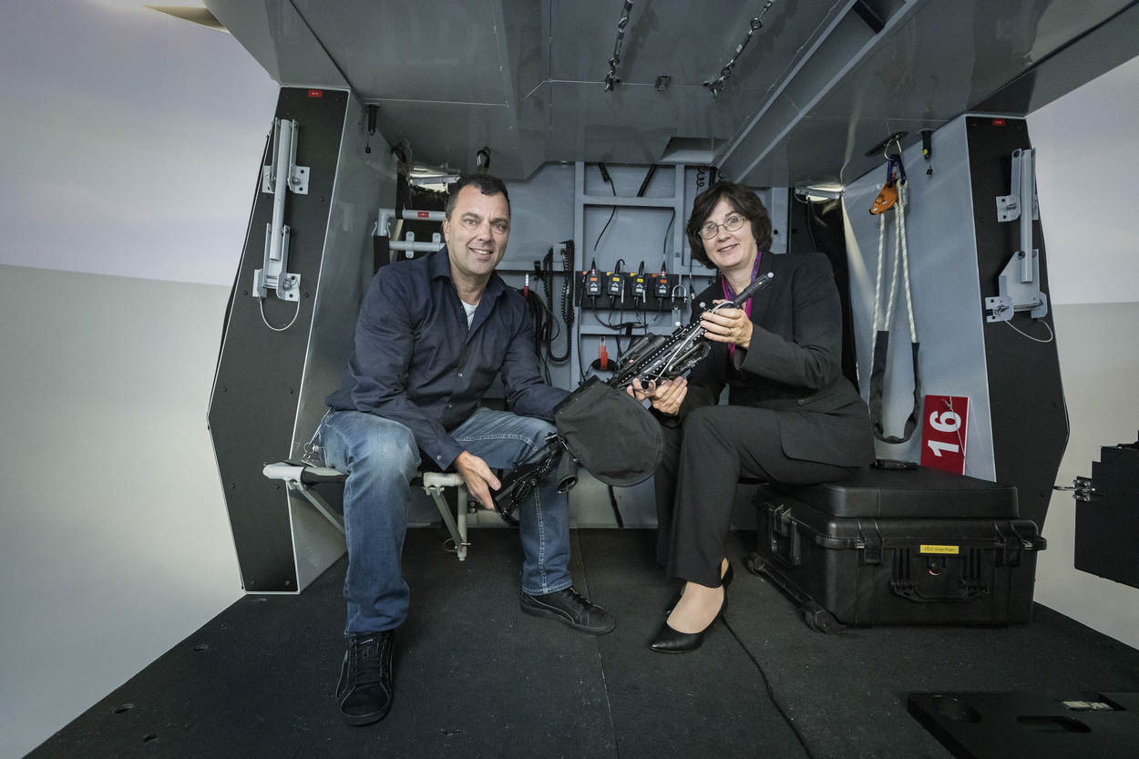 “Dat gevoel van een écht wapen in handen hebben, was precies de bedoeling”, glundert Hans Garssen. Hij is als bureauhoofd van het DMO/JIVC-cluster Trainers & Simulatoren verantwoordelijk voor de aflevering en instandhouding van een zo goed mogelijk product. Garssen heeft het zelf allemaal niet bedacht en gemaakt, maar zorgde er wel voor dat de gebruikerswensen van Korps Mariniers en Defensie Helikopter Commando (DHC) goed vertaald werden in een pakket van eisen voor leverancier Pathfinder Systems. Dat bedrijf maakte ook de 3,5 jaar geleden opgeleverde doorgunner-simulatoren voor het DHC.