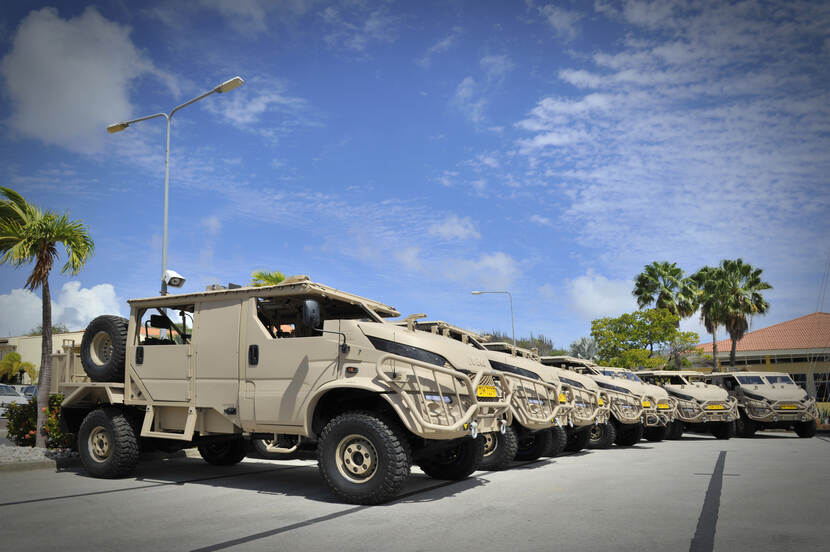 Defensie in het Caribisch gebied heeft Anaconda’s begin deze maand in gebruik genomen. 35 werden nu geleverd, er volgen in ieder geval nog 11. De nieuwe terreinwagens vervangen gepantserde Mercedes-Benz (MB280). Brigadegeneraal der Mariniers en Commandant Zeemacht Caribisch Gebied Peter-Jan de Vin nam het wagenpark in ontvangst. “Een belangrijk moment, na jaren van bezuiniging”, memoreerde De Vin.