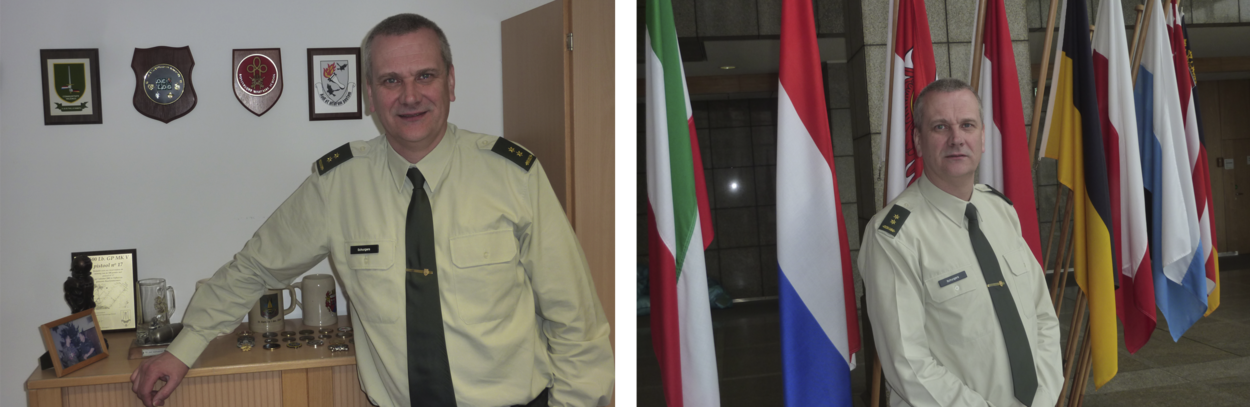Gevarieerd. Zo mag je de loopbaan van Schurgers wel noemen. Begonnen als onderofficier munitietechniek, lange tijd in diverse functies werkzaam bij de Explosieven Opruimingsdienst (EOD), vaak op uitzending waarbij die naar Srebrenica als commandant EOD-detachement er vanzelfsprekend uitspringt. De reorganisatie naar EODD leidde tot een overstap naar de Militaire Inlichtingen- en Veiligheidsdienst (MIVD), waarover hij vanzelfsprekend niet al teveel kwijt wil. “Een buitenlandplaatsing had al langer mijn interesse, dus toen deze post voorbij kwam, heb ik er mijn tanden ingezet en niet meer losgelaten. Materieel-technisch zat het allemaal wel goed; ik ben nog ouderwets td-opgeleid en begrijp waar het over gaat. Het was voor mij meer een kwestie van een rugzak afdoen en een nieuwe omhangen.”
