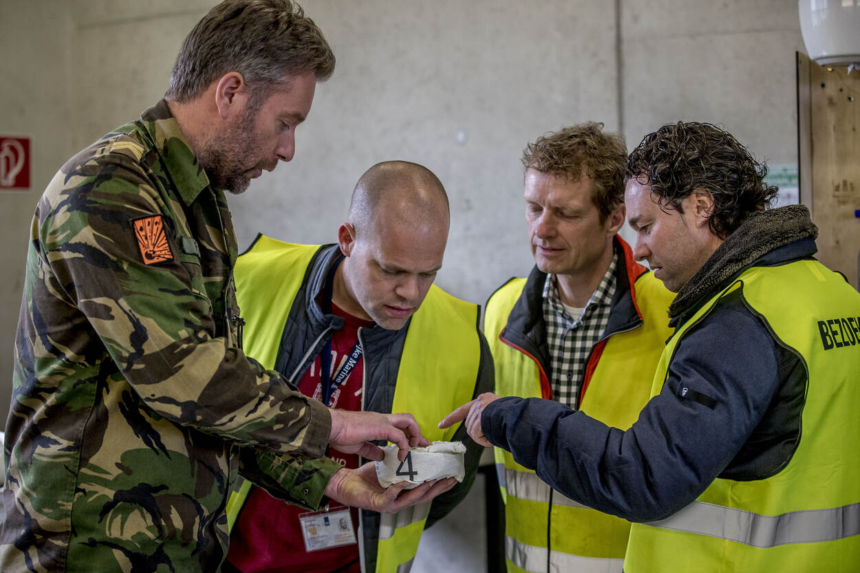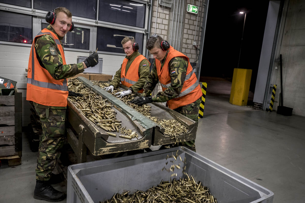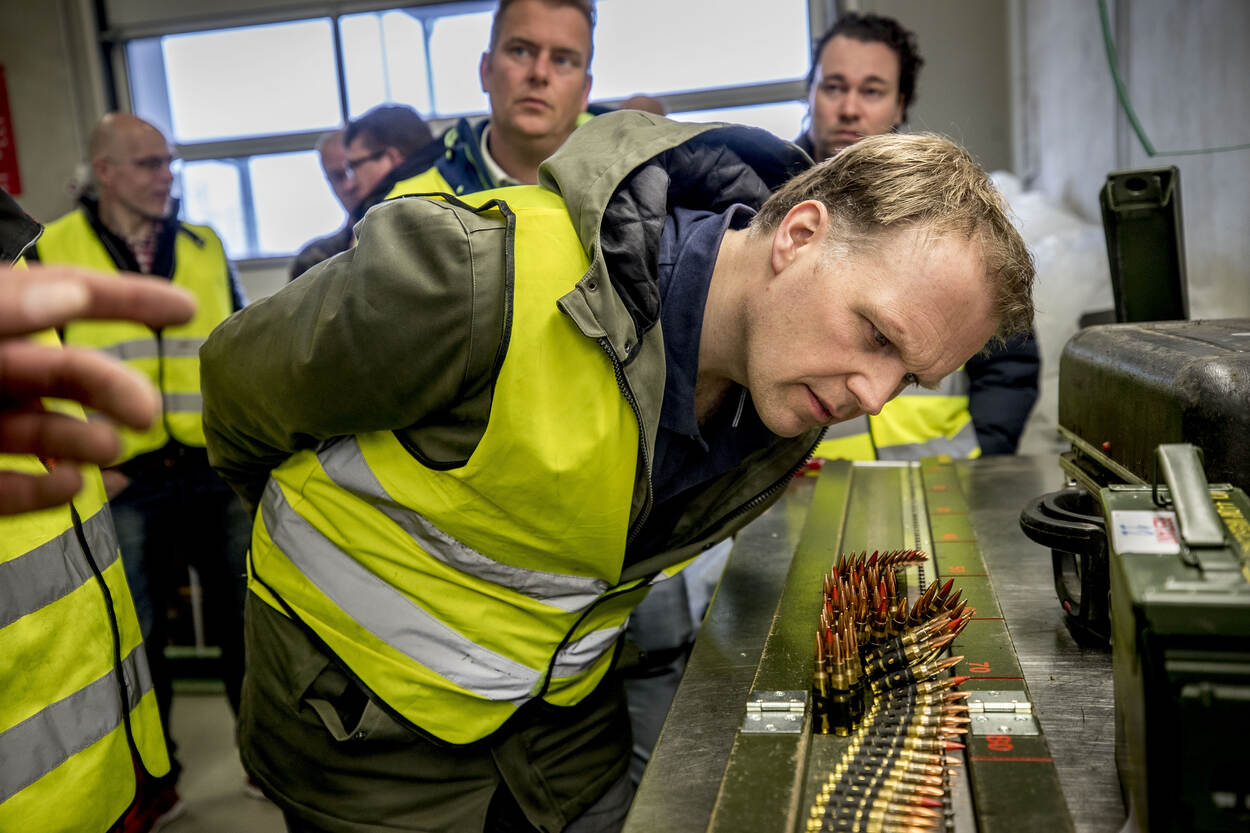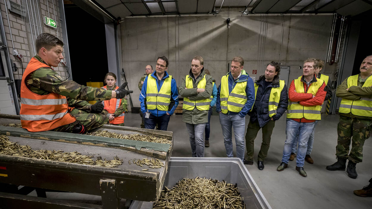 De in gele veiligheidshesjes gestoken DMO’ers krijgen te horen dat het soms voor komt dat eenheden ongebruikte munitie niet volgens de voorschriften terugsturen naar het Defensie Munitiebedrijf. Lastig, maar niet onveilig. “Wij nemen contact op met de eenheid en leggen uit dat dit niet handig is. Nee, we geven niemand een schop onder de kont”, zegt de adjudant.