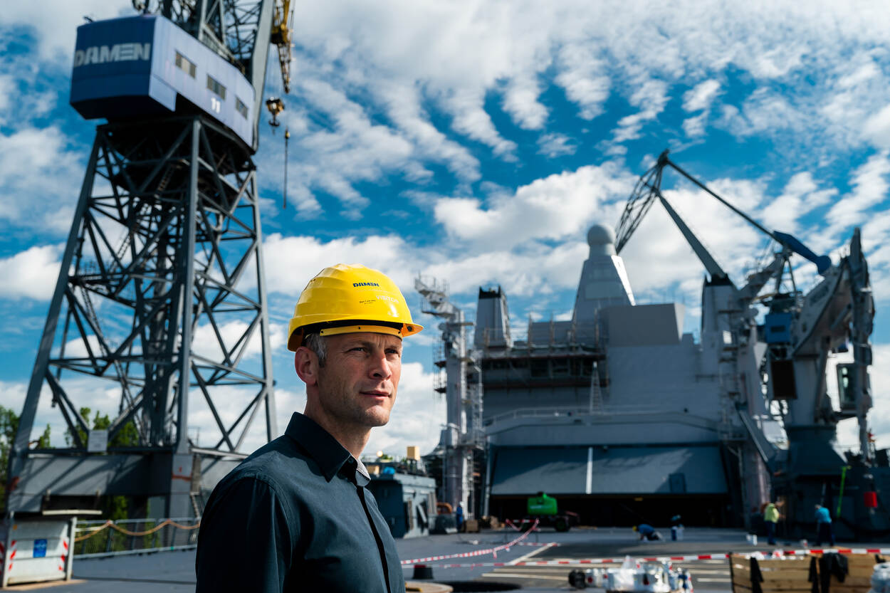 In 6 jaar van niets tot een varend schip is geen lange tijd, erkent Sebastiaan. “Daarom is gekeken naar wat we al hebben op de huidige schepen. Neem bijvoorbeeld de bevoorradingsmasten op de Karel Doorman, die worden 1 op 1 overgenomen op het nieuwe schip. Dat scheelt onderzoekstijd. Nu moeten we alleen zorgen voor extra reservedelen.”