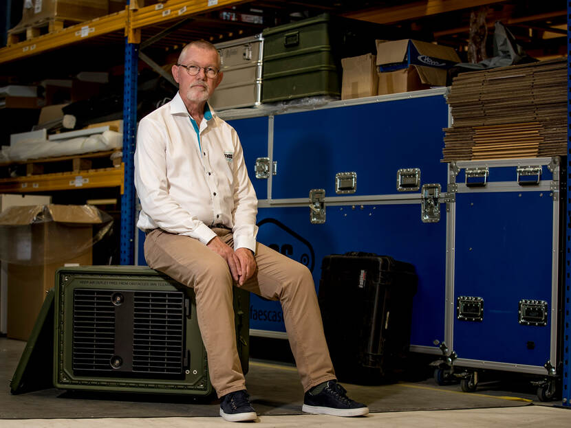 Die band gaat al een tijdje mee, liefst 28 jaar. Waar het bedrijf uit Noord-Brabant en de Defensie Materieel Organisatie (DMO) elkaar raken, wordt even verderop bij de ingang beter zichtbaar: verpakkingsmaterialen in alle soorten en maten staan opgesteld: wapenkoffers, aluminium kisten, half 19-inch ICT-behuizingen (TITAAN), 19-inch rekken voor datacentra, een grote variatie aan ruggedized kunststof koffers van hoogwaardig kunststof (SKB) en alle te bedenken soorten flightcases. Hardeman: “We schrikken niet van afwijkende producten en materialen. We kunnen zo’n beetje alles op maat maken in onze verpakkingen en de veelzijdigheid aan interieurs hierin.”