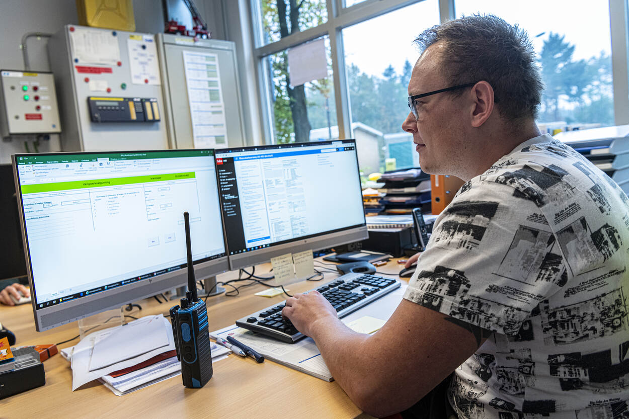 Kevin optimaliseert de vergunning en zorgt ervoor dat het formulier voldoet aan de eisen van de arbeidsinspectie. Een hele klus, maar: “door te digitaliseren wordt de vergunning overzichtelijker en archiveer je de documenten gemakkelijker. Daarnaast denk ik erover een video op te nemen. Die krijgt men dan te zien voordat ze de vergunning invullen en hier aan het werk gaan. Zodat iedereen zich echt bewust is van de risico’s op het terrein.”