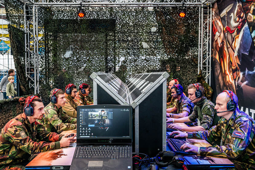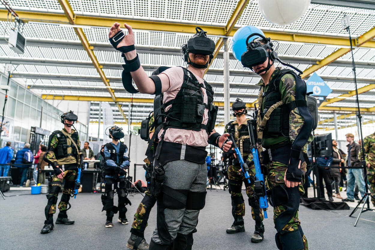 Hét IT-bedrijf van Defensie, het Joint IV Commando, was met andere innovatieve onderdelen van de krijgsmacht prominent aanwezig op Bright Day. Manieren om die op interactieve te demonstreren, waren bijvoorbeeld 3D foodprinting en het virtuele trainingssysteem SUIT (foto onder).