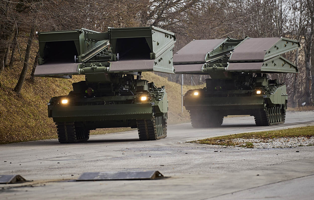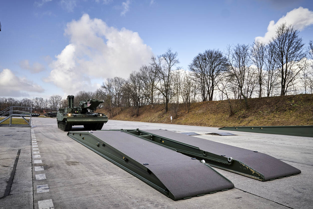 Het is nog wel even wachten tot de Defensie Materieel Organisatie ze kan afleveren bij de landmacht, maar de eerste 2 van de 8 Combat Support Bridge (CSB) Leguaan Leopards 2 zijn ‘binnen’. Plaatsvervangend directeur DMO generaal-majoor Ivo de Jong en projectleider Jacques Roosenboom namen vorige week de imposante voertuigen in ontvangst bij ‘bouwer’ Krauss-Maffei Wegmann in München.