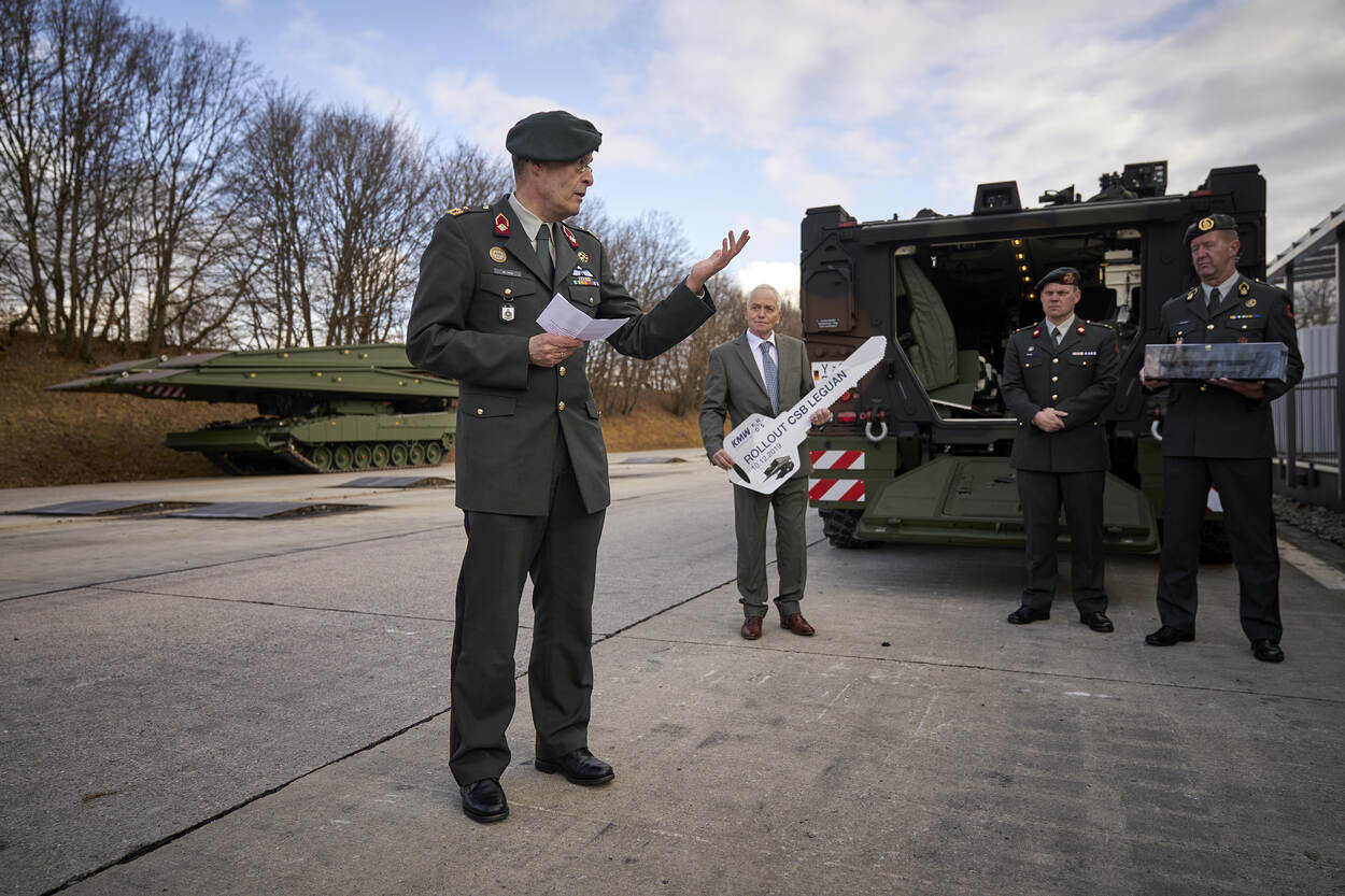 Ook generaal-majoor De Jong was bijzonder in zijn nopjes. “Ik had niet durven dromen dat we 3 jaar na de start de eerste Leguaan al binnen hebben. Dat is een geweldige prestatie. Het project is niet alleen van militair, maar ook van groot politiek belang gezien de goede samenwerking tussen Nederland en Duitsland.”