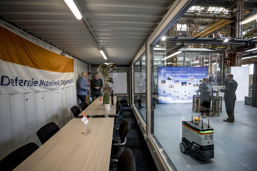 Agile. Scrum. Pitch. Incubators. Het zijn nieuwerwetse woorden die sinds begin maart regelmatig door de hal van de oude Rotterdamse Droogdok Maatschappij galmen. Military Innovation by Doing, onderdeel van de Defensie Materieel Organisatie, heeft zijn eigen glazen huis in een loods aan de Nieuwe Maas.
