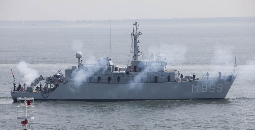 Hr.Ms. Hellevoetsluis (foto) was in dienst van de Koninklijke Marine van begin 1987 tot oktober 2011. Net als de Maassluis is het schip veelvuldig ingezet. Zoals inzet voor de ernstoperatie bij de Baltische staten in het najaar van 2001. (foto: sergeant-majoor Maartje Roos)