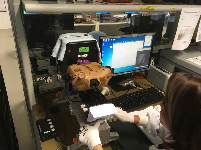 Uiteindelijk reageerde de markt met 4 kijkers, waarvan slechts 1 exemplaar aan de eisen van een kleine kijker voldeed. “Van elk type kochten we een exemplaar en onderwierpen die aan uitgebreide tests”, herinnert Ursum zich. In het optronicalab in Den Helder werden de kijkers optisch doorgelicht. Haalden ze bijvoorbeeld die gewenste afstand van minimaal een kilometer? Het Kenniscentrum Wapens & Munitie (KCW&M) in ’t Harde dompelde de apparaten onder water en stelde ze bloot aan extreme temperaturen. En uiteindelijke gebruikers werden de duisternis ingestuurd om de prestaties in het veld te beoordelen.