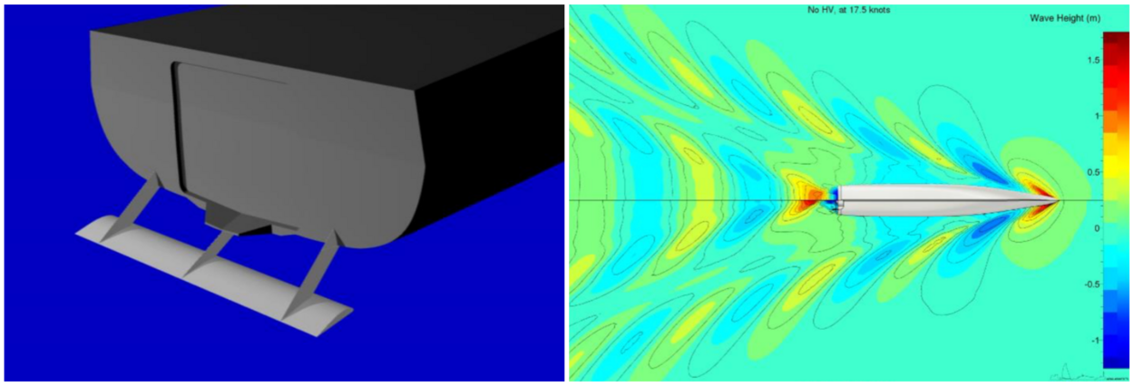 De Hull Vane is een draagvleugel van 11 meter breed die achterin aan de onderkant van een schip wordt bevestigd. Het grootste voordeel is de brandstofbesparing die het oplevert, die is minstens 10%. Met een verlaagde weerstand kan het schip bovendien een hogere topsnelheid met hetzelfde motorvermogen behalen. Daarnaast zorgt de modificatie voor verminderde kielzog en dus minder golven. Dat is tactisch belangrijk, omdat het schip zo vanuit de lucht minder snel is te zien.