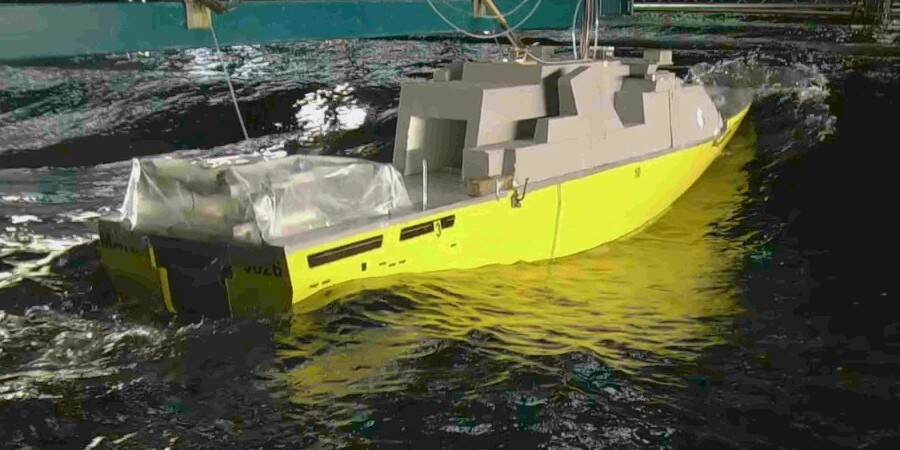 Om de voordelen op papier te bewijzen zonder alleen op computeranalyses te hoeven vertrouwen, schakelde de Afdeling Maritieme Systemen (AMS) de innovatiemanagers bij Military Innovation by Doing (MIND) in, het innovatiecentrum van DMO. Met modeltesten toonden ze samen de meerwaarde van de spoiler aan. "Mijn mailboxmap 'Hull Vane' puilt na 5 jaar uit," vertelt Jan van Bergen van AMS. Want de resultaten kwamen niet vanzelf boven drijven. "De firma Hull Vane heeft een Frans schip van 56 meter voorzien van de modificatie, maar dat is tot nu toe het grootste marineschip. Ons beoogde patrouilleschip is wel 100 meter. Dat leverde dus de nodige uitdagingen op."