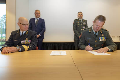 “Blij kijken, jij bent er nu van”, klonk het in de richting van luitenant-kolonel Albert van Heek. Hij neemt bij de landmacht het stokje over van Joost Vernooij, sinds 2017 projectleider namens de DMO. Voor hem komt er nu dus deels een einde aan een project, dat voor Nederland zijn begin kende halverwege de jaren 90. Toen ging de Tweede Kamer akkoord met de vervanging van de aloude pantserwagens YPR en M577. Defensie sloot zich daarvoor aan bij OCCAR - een Europees samenwerkingsverband met Duitsland en toen nog het Verenigd Koninkrijk - om gezamenlijk onder meer een pantserwielvoertuig te ontwikkelen. Na de terugtrekking van het VK (2004) voltooiden Duitsland en Nederland deze ontwikkelingsfase. In 2014 maakte het voertuig zijn debuut tijdens Duitse operationele inzet in Afghanistan. Inmiddels is het VK teruggekeerd in het project en hebben Australië en Litouwen de Boxer gekocht.