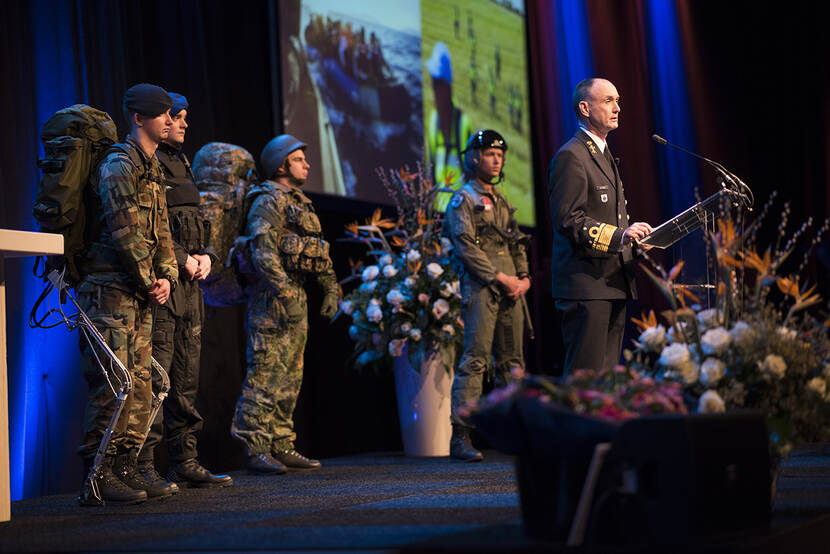 “Dat was niet alleen in 2017. Ik ben ervan overtuigd dat de sleutel voor het verder door ontwikkelen van de krijgsmacht ligt in sociaal innoveren. En dat is niets anders dan op slimme manieren samen te werken. We moeten werken vanuit de bedoeling, en niet alleen top-down en vanuit de verzuiling. Werk samen over de grenzen van organisatorische eenheden heen, laat regels helpen, in plaats van beperken en laat je niet afleiden door 'tuinhekjes discussies'. Dat doorbreken van die hekjes gaat steeds beter. Maar daar kunnen we ook nog meer winnen: zoek de verbinding, werk samen, binnen de DMO en ook met de omgeving. Mooi voorbeeld waar dat al heel goed gaat, is de samenwerking met onze buren aan de overkant op de Kromhoutkazerne [red. Staf CLAS in gebouw K9]. Je ziet dat als je fysiek bij elkaar zit, dat dat ook helpt in de samenwerking. Maar afstand hoeft geen barrière te zijn, dat hebben we in deze COVID-19-tijd ook wel geleerd. Veel kan op afstand en je hoeft niet altijd fysiek bij elkaar te komen. Als we maar inzetten op nog wendbaarder en flexibeler worden en snelheid maken in het voorzien in proces. Alleen dan kunnen we echt samen invulling geven aan de Defensievisie 2035.”