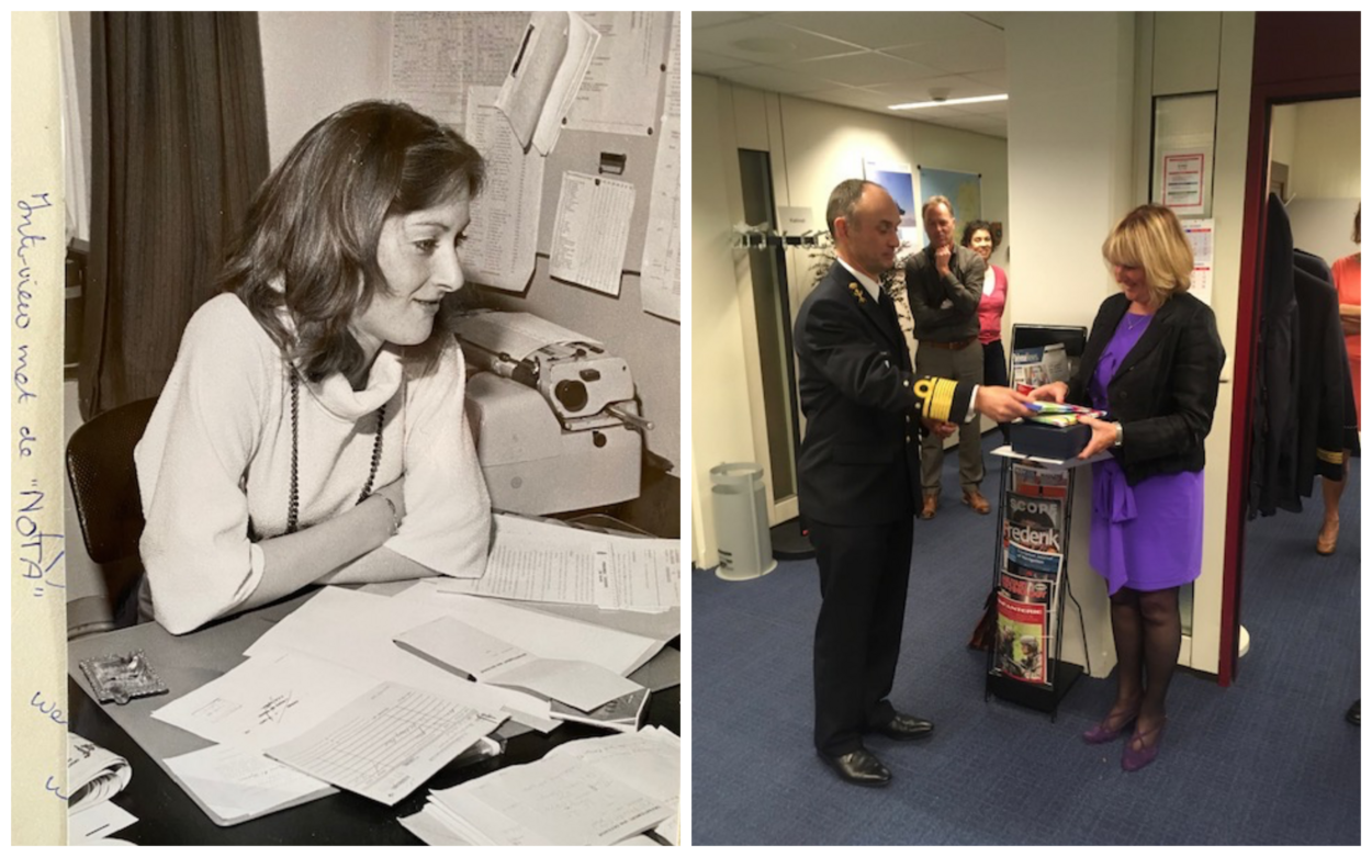 En nu? Nu nadert na 43 jaar het afscheid. “Dat voelt heel dubbel. Met de huidige directeur kan ik lezen en schrijven. Hij is innovatief en geeft jonge mensen kansen. Hij haalt het beste uit ons werk en strijdt daarvoor tot op het hoogste dek, ook al levert dat niet altijd de populariteitsprijs op. Ook het werken met mijn kabinetsteam zal ik ontzettend missen. Maar ik ben 63: geen oude vrouw, maar ook geen jonkie meer. Voor we door corona moesten thuiswerken, stond ik om 5 uur ’s morgens op om op tijd op de Kromhoutkazerne te zijn. Ik krijg geen energie meer van die lange werkdagen.”