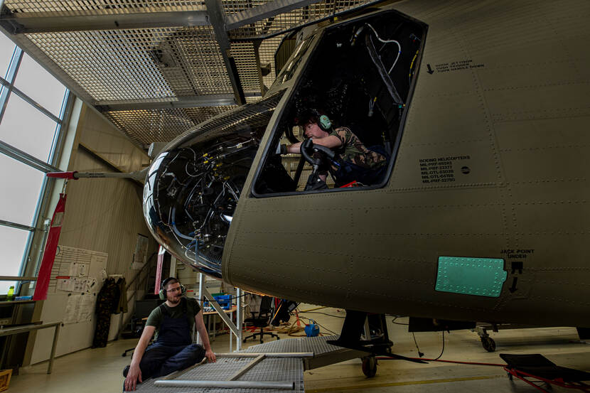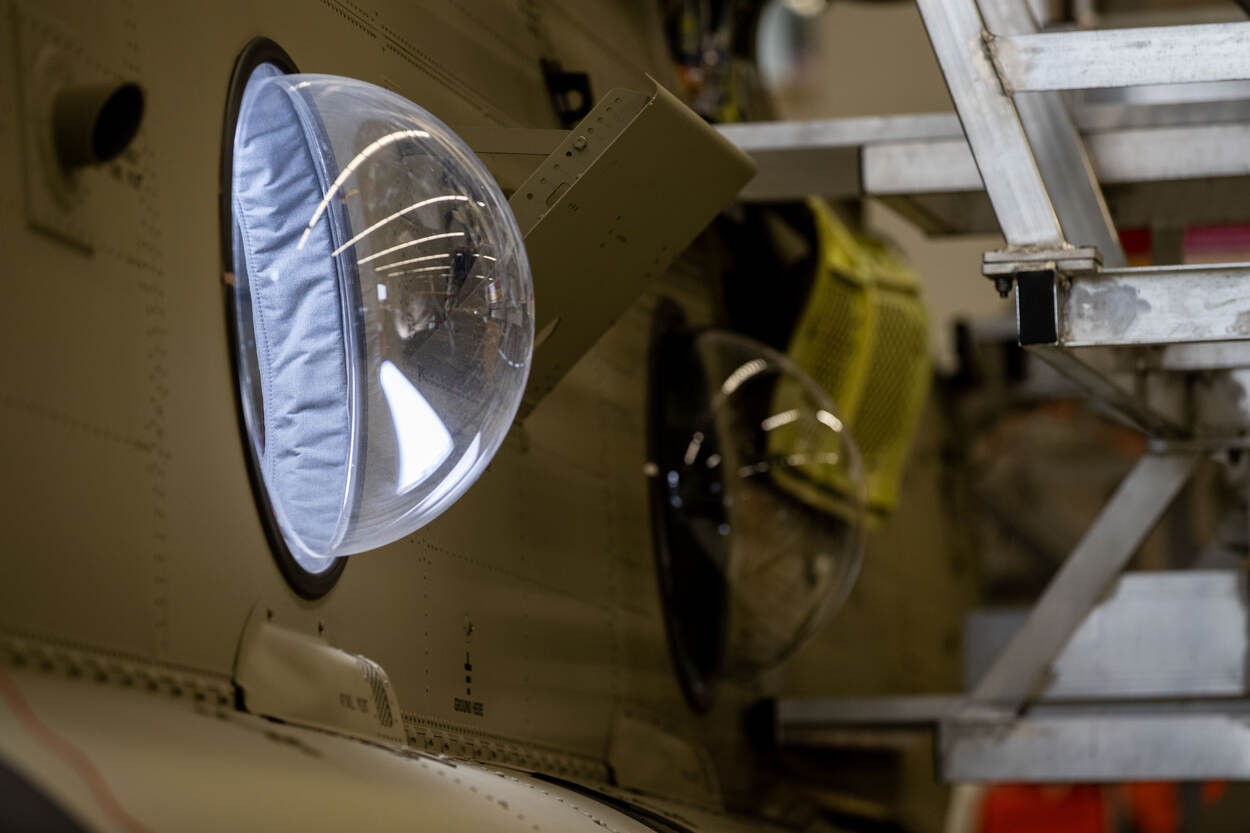 “Zoiets gebeurt niet iedere dag.” In Woensdrecht brengen de monteurs nog een aantal modificaties aan om aan de Nederlandse maatstaven te voldoen. “Zoals de extra gebolde ramen om het omgevingsbewustzijn van loadmasters te vergroten. Of een speciale coating over de voorruit, zodat de regen er snel afwaait.”