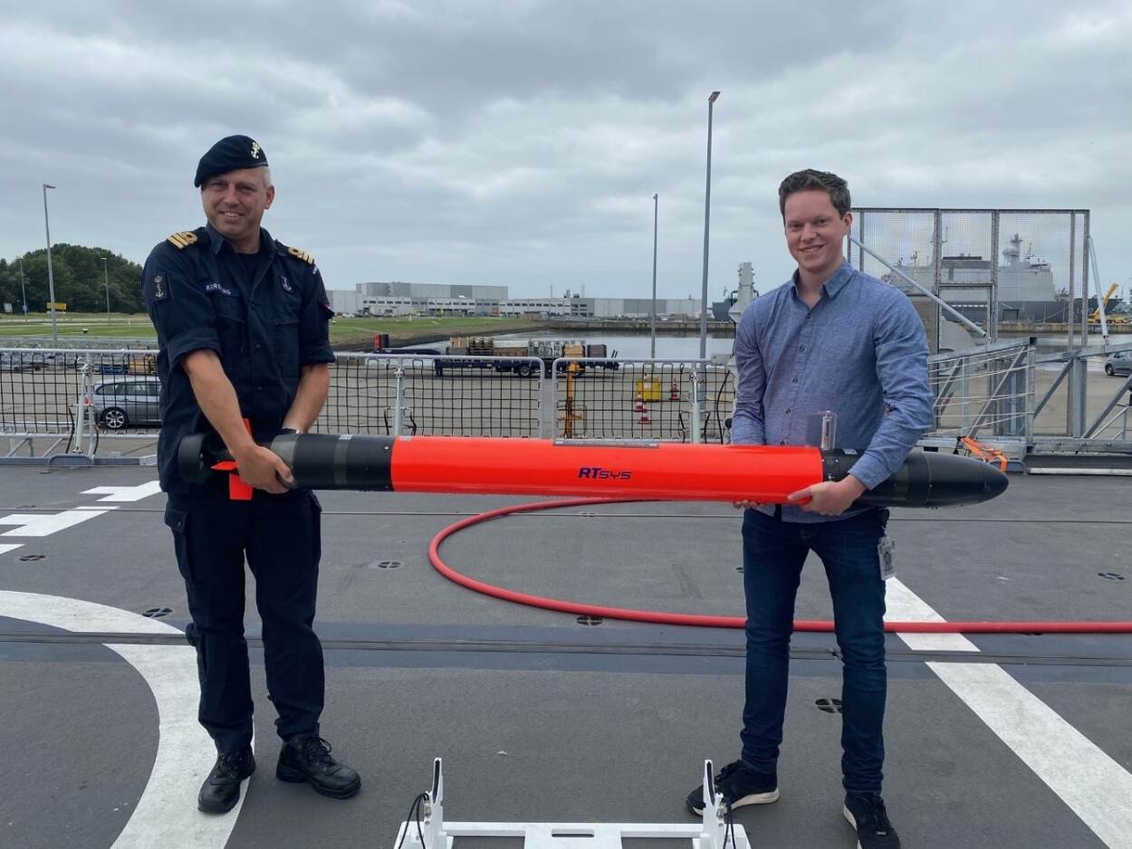 Ruim 2 meter lang meet het oranje oefendoel dat zich onder water voordoet als een daadwerkelijke onderzeeboot van enkele tientallen meters lang. Een onderzeebootjager krijgt een levensecht beeld op de sonarapparatuur. Het doel reageert realistisch op uitgezonden pings. Vier jaar geleden vroeg kapitein-luitenant ter zee Björn Kerstens om een dergelijk oefendoel. “Fantastisch dat ze er nu zijn”, vertelt de commandant van Zr.Ms. Van Amstel vlak voordat het schip begint aan een vaarperiode van 3 maanden.