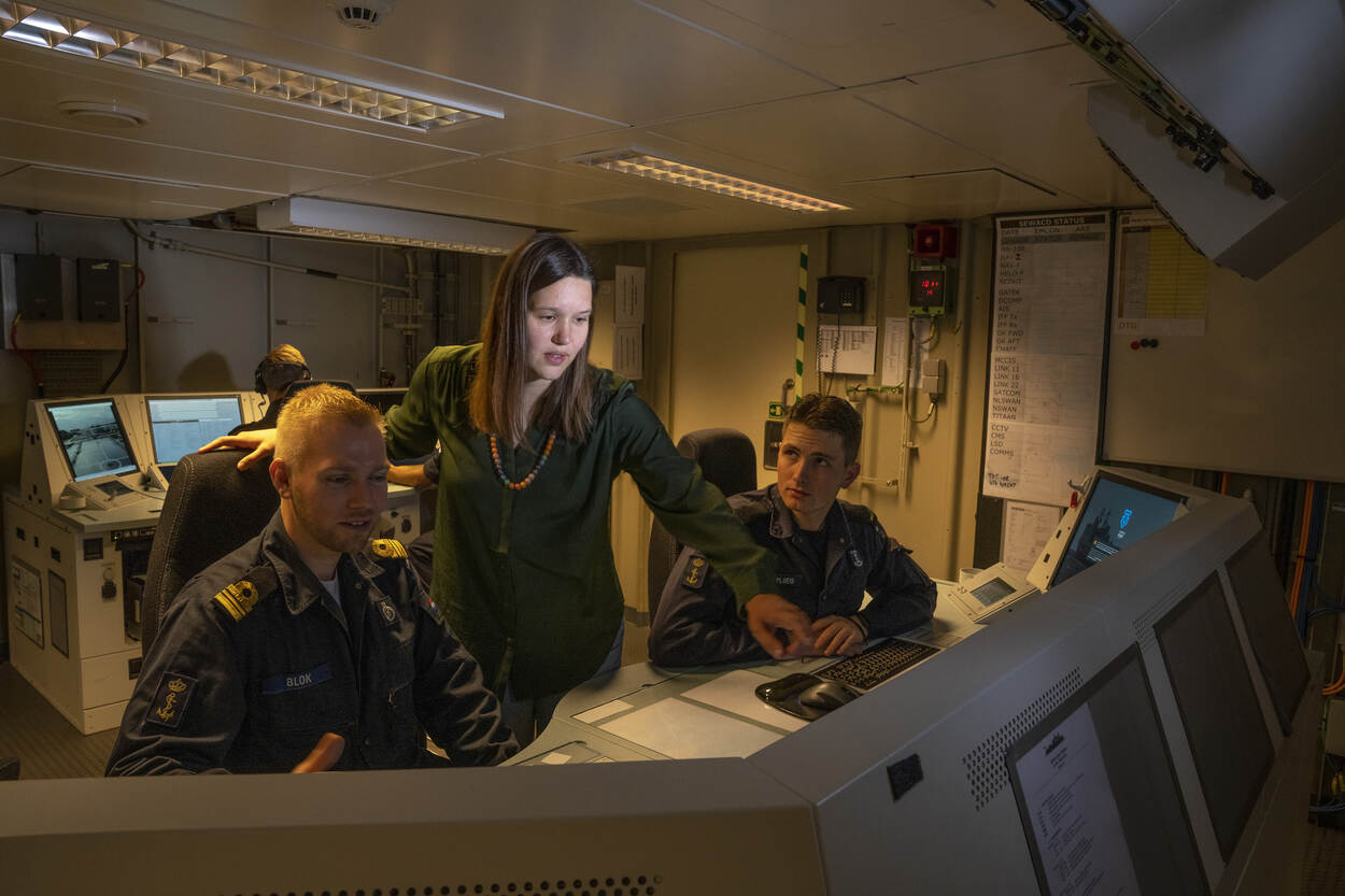 Juist om te voorkomen dat gebruikers steeds weer een 'oorlogje' moeten uitvechten met hun computer is alles erop gericht om de zogenaamde user experience (gebruiksvriendelijkheid) van een product te verbeteren. Kirsten: “Onze uitdaging is gebruiksvriendelijke software met de juiste functionaliteiten ontwikkelen die aansluit bij de informatiebehoefte, zodat de gebruikers hun werk goed kunnen doen. Ik stem daarom veel af met anderen; ik werk nauw samen met de business analisten, softwareontwikkelaars en militaire operationeel experts van Maritieme IT. Om de bedrijfsvoering goed te begrijpen en de user interface ontwerpen te evalueren stap ik regelmatig aan boord van een schip om een uur, dag of week te observeren en met mijn militaire collega’s te praten over hun werk.”