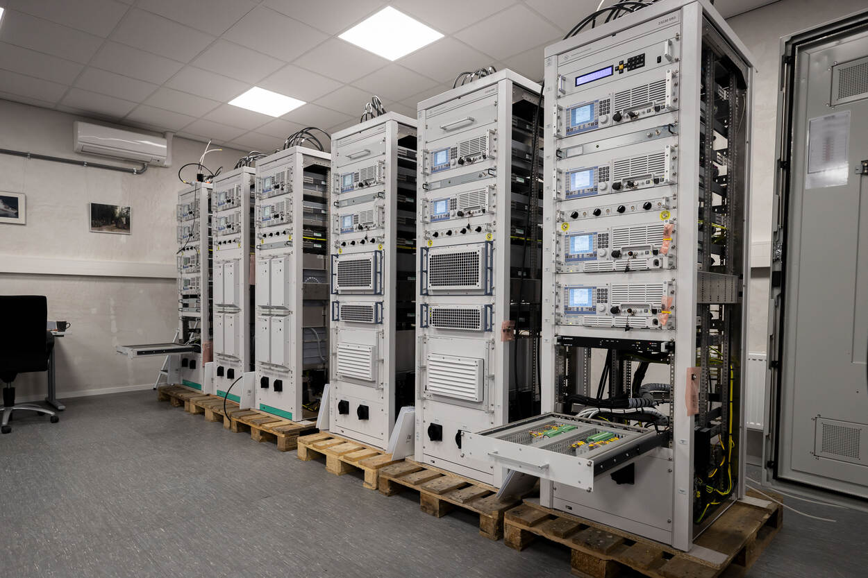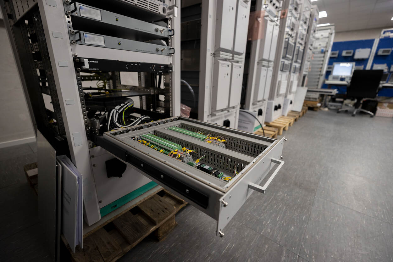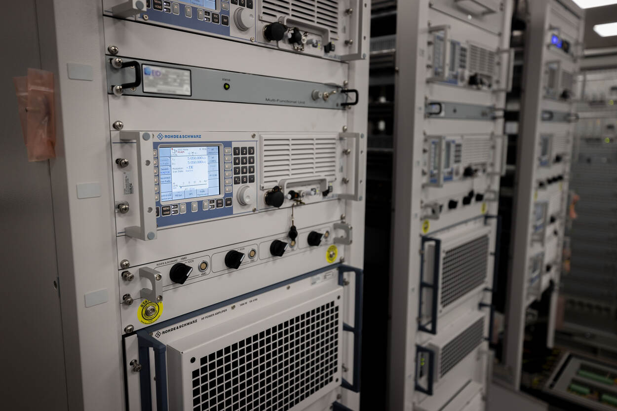 Meijers is op het moment een van de weinige medewerkers op het kantoor van Rohde & Schwarz Benelux net buiten Utrecht. Ook hier is thuiswerken nog het devies maar dat mag voor een bedrijf gespecialiseerd in communicatietechnieken geen probleem zijn. Voor sommige zaken is thuiswerken echter niet mogelijk. De radio’s voor het toekomstige Combat Support Ship (CSS) Zr.Ms. Den Helder ondergaan in een beveiligde ruimte een Factory Acceptance Test. Een belangrijke mijlpaal in de ontwikkeling van nieuwe apparatuur. “Doen ze het hier naar behoren, dan vertrekken deze radiokasten naar Roemenië, waar ze eind van dit jaar worden ingebouwd in het nieuwe CSS”, vertelt Bas Meijers wijzend naar de ruim twaalf kasten met High, Very High en Ultra High Frequency radio’s, signaalfilters en andere apparatuur die nodig is om een schip te laten praten met alles van de interne stations, het contact met de thuisbasis tot een vlootverband en vliegend materieel.