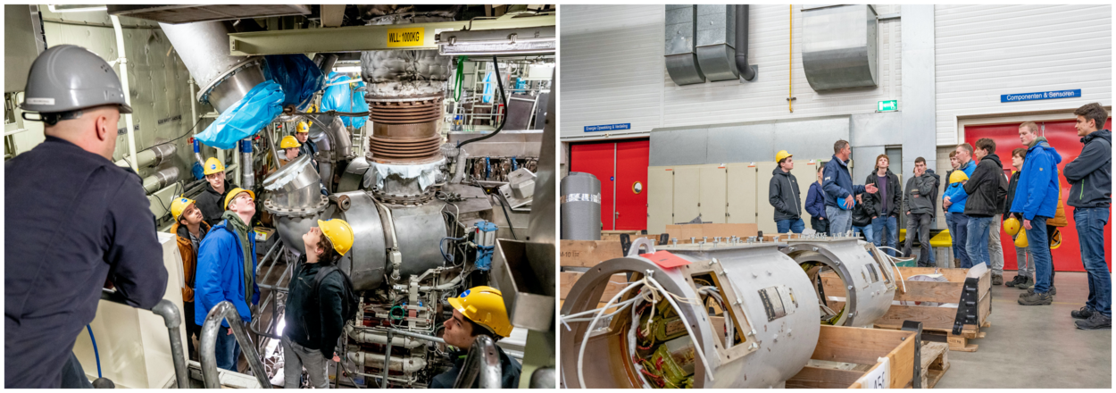 Om de studenten wat meer inspiratie en achtergrondinformatie te geven, kregen ze begin maart een rondleiding bij de Directie Materiële Instandhouding op de Marinehaven in Den Helder. Aan boord van de in groot onderhoud liggende Zr.Ms. De Ruyter mochten ze in de technische keuken kijken. Met name de tandwielkastruimte zorgde voor gepast ontzag. “Pffff, warm hier. Je zou daar maar helemaal tussenin moeten sleutelen?”